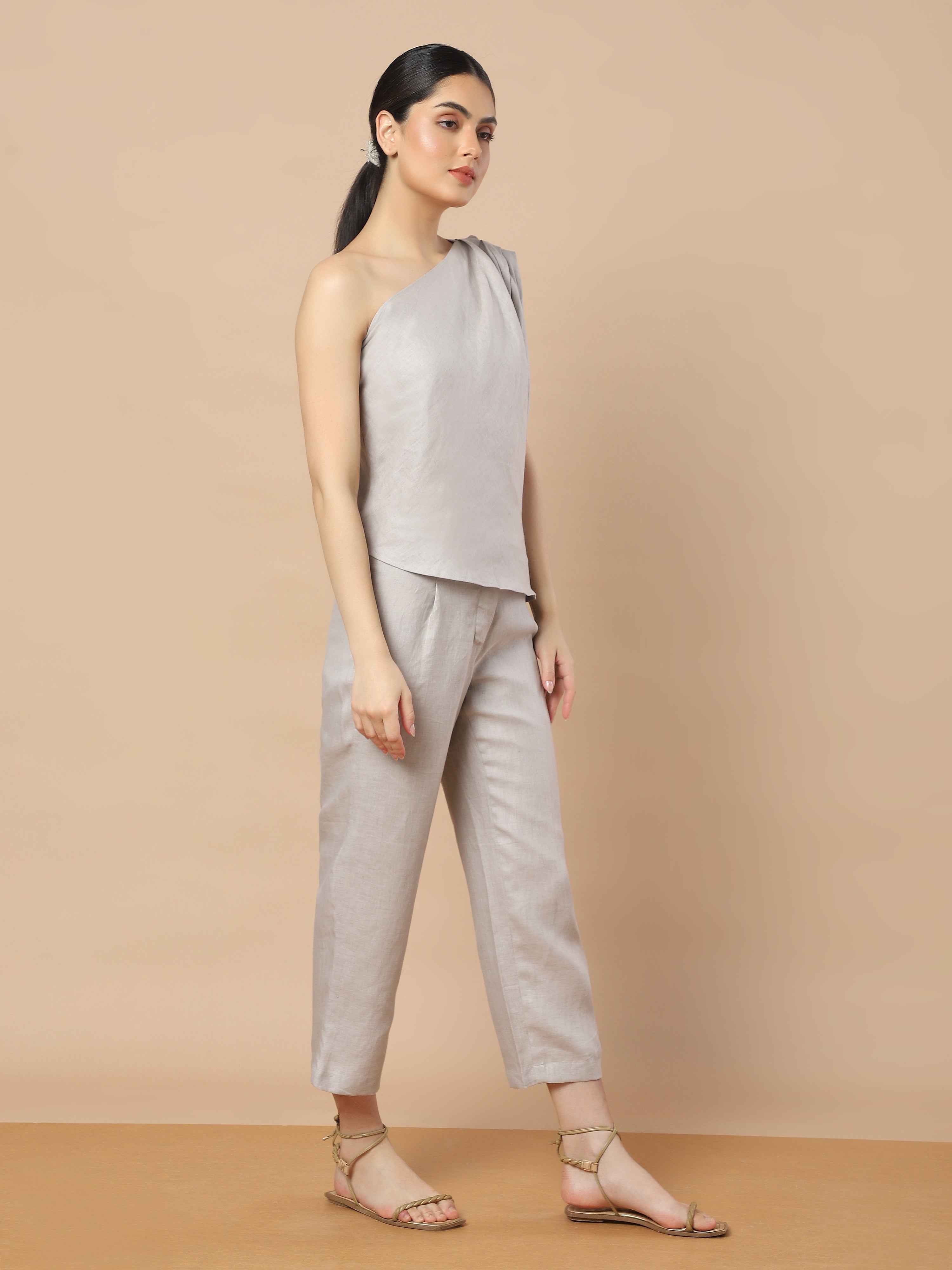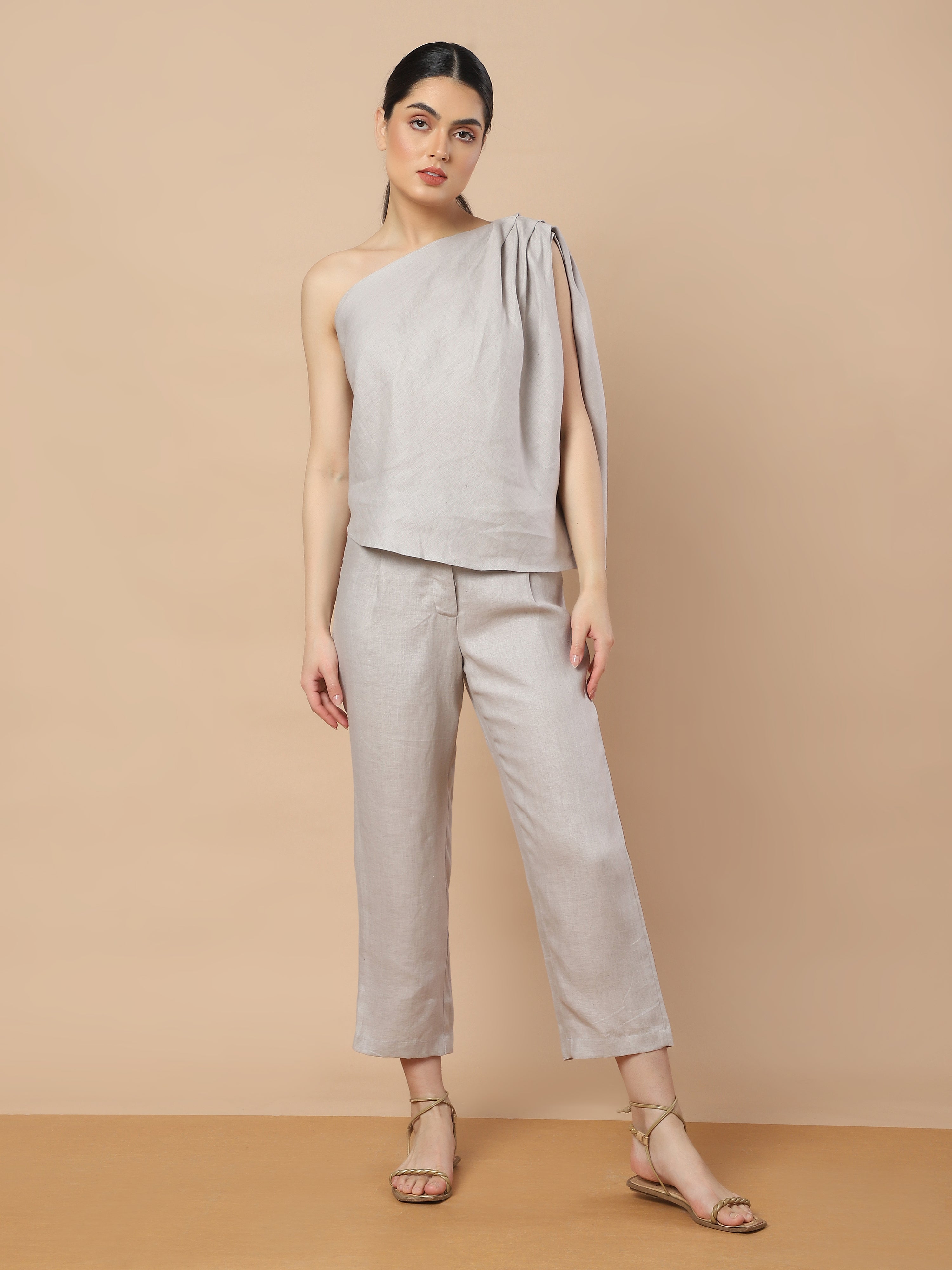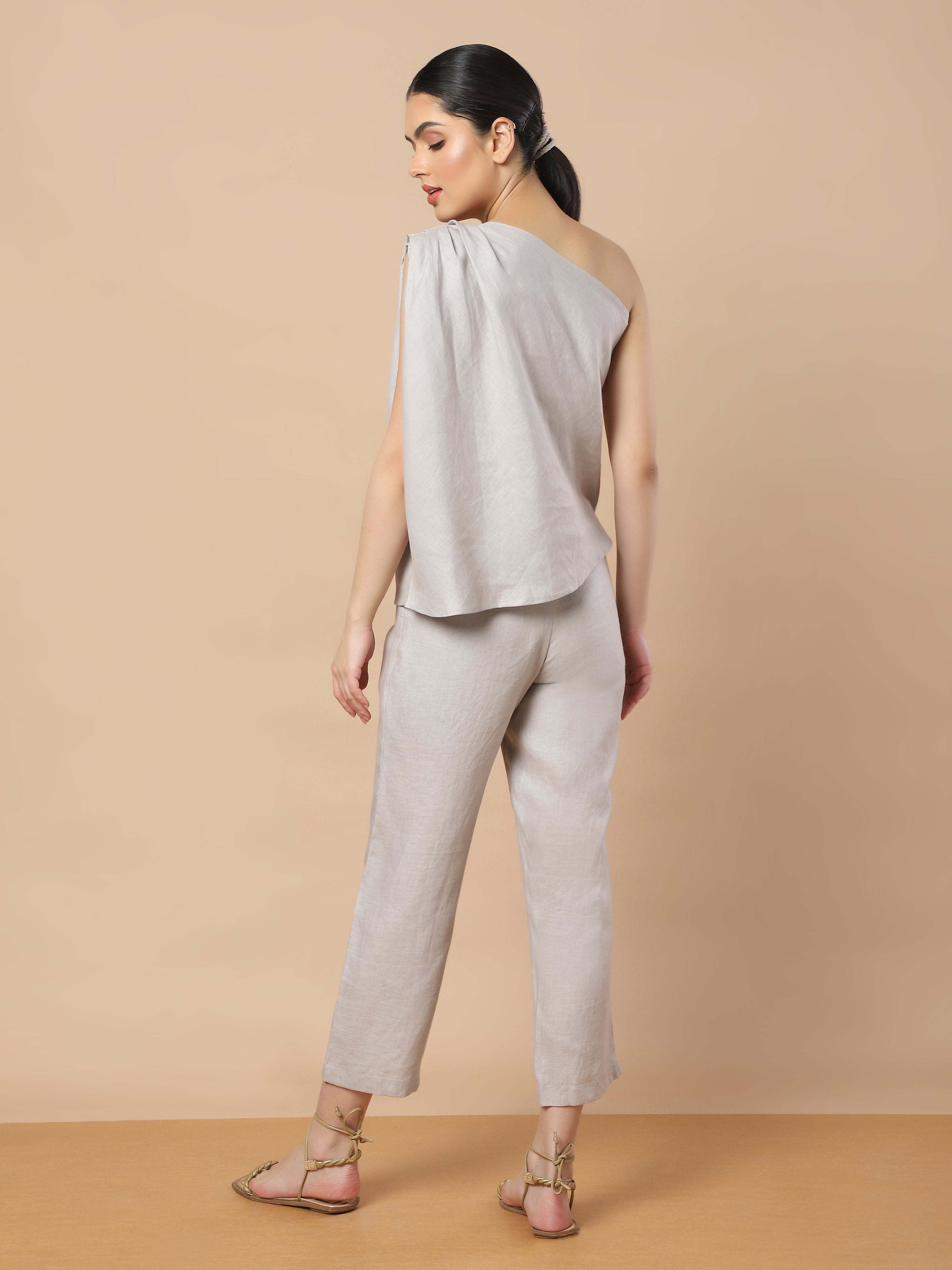 "Leave conformity behind with our Hemp One-Shoulder Top & Pant Set, defying the ordinary with every stitch. Bid farewell to mundane ensembles and welcome the allure of asymmetry. Crafted from premium Oeko-Tex certified hemp, this set promises comfort and sustainability in every thread. Embrace the unexpected with its one-shoulder top, a statement of individuality. Paired with sleek pants, it creates an ensemble that demands attention. Don't settle for the commonplace – elevate your wardrobe with this distinctive set.