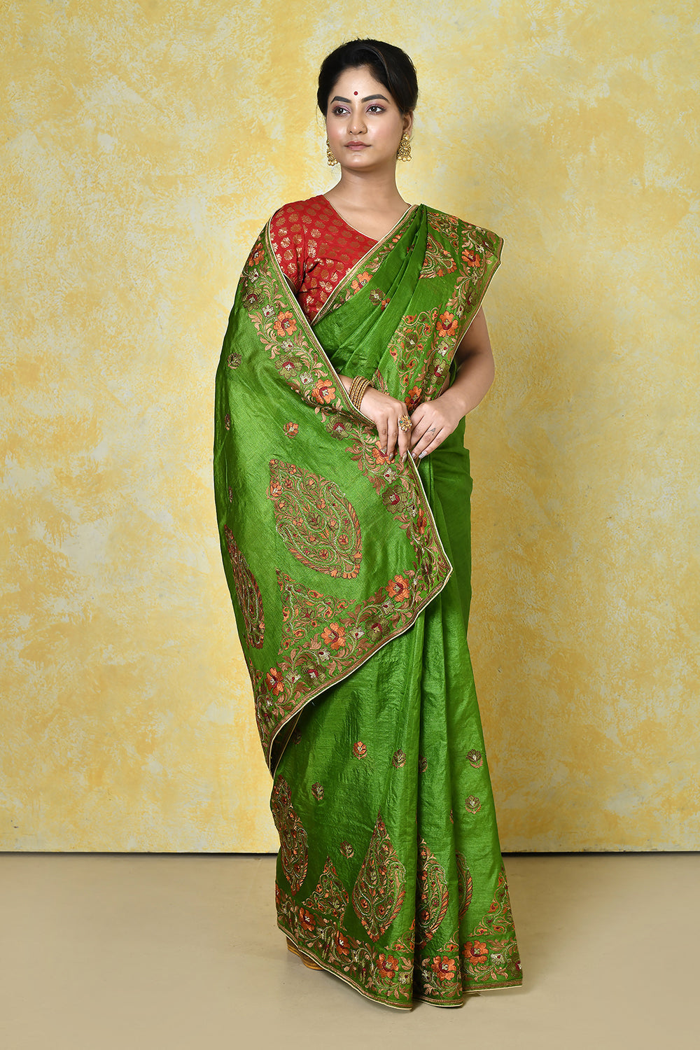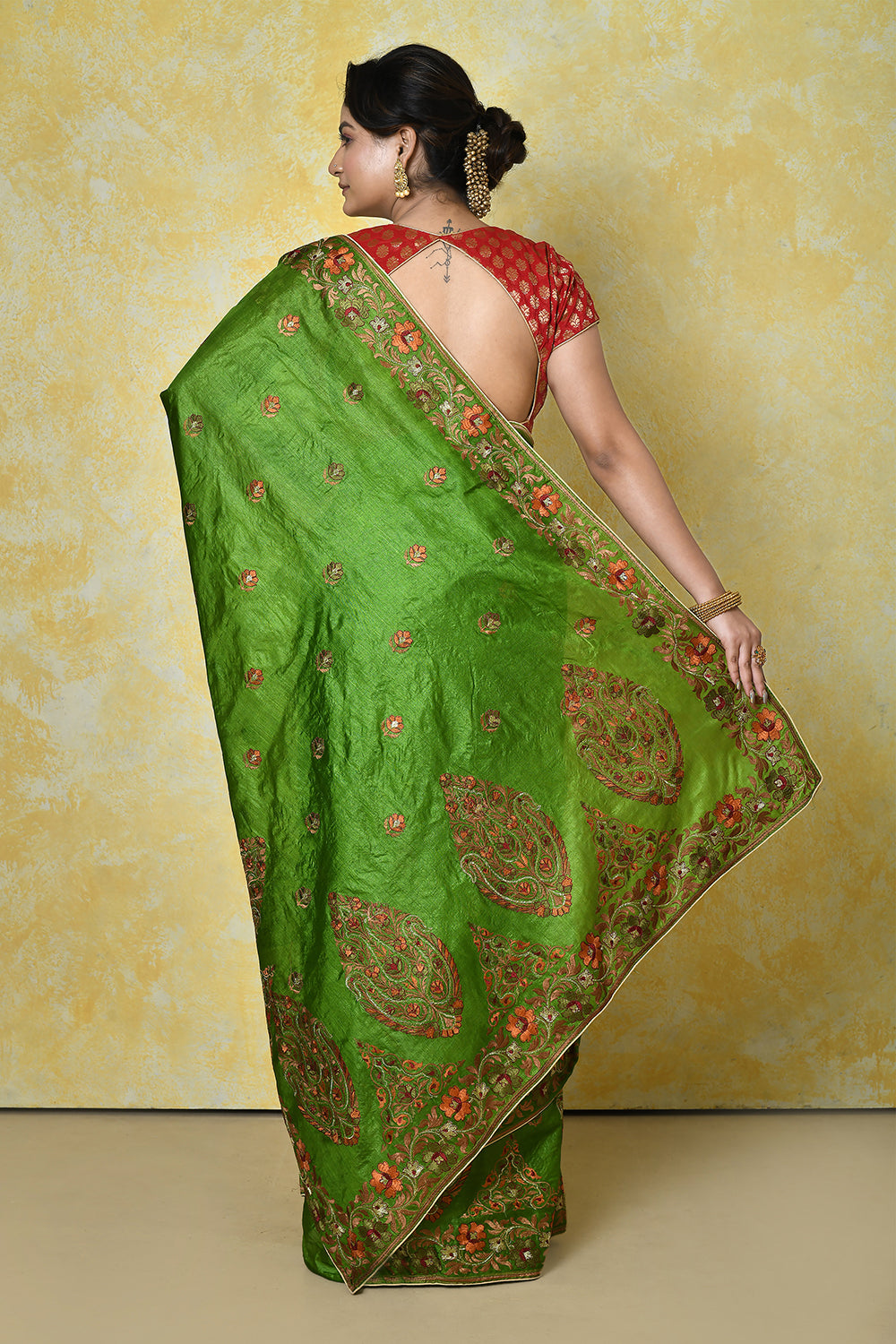 Mehndi Banarasi Silk SareeFabric: Banarasi SilkBlouse Fabrice Length: 80 cmStitched: Blouse can be stitched from 32 to...