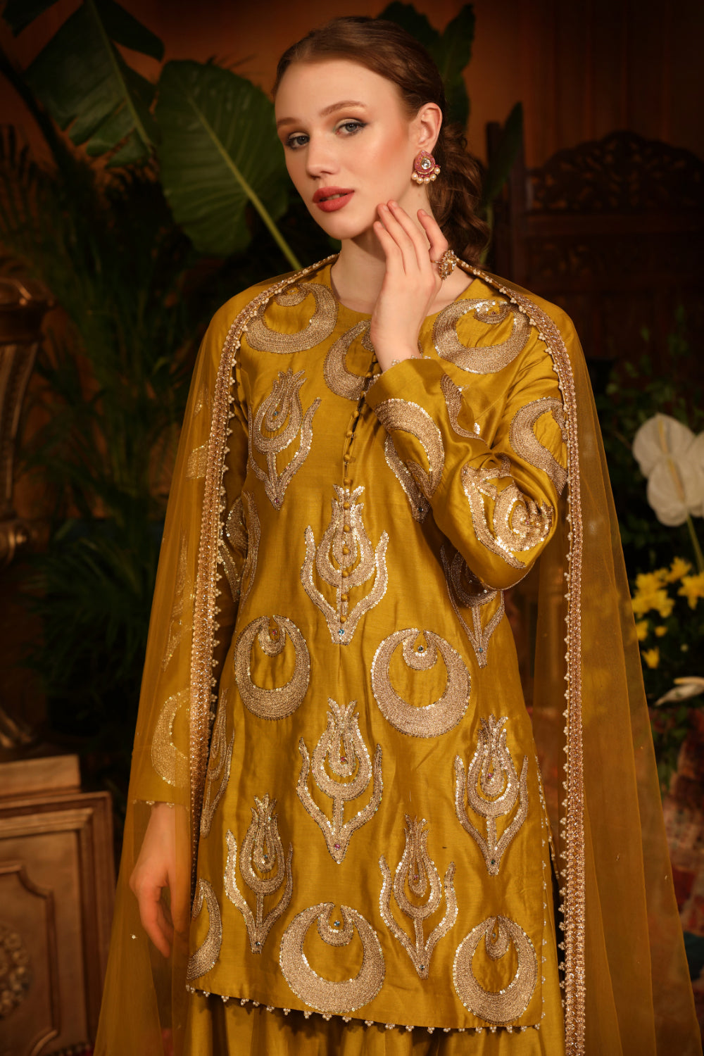 Mustard Chanderi Silk Paired With Sharar And Dupatta