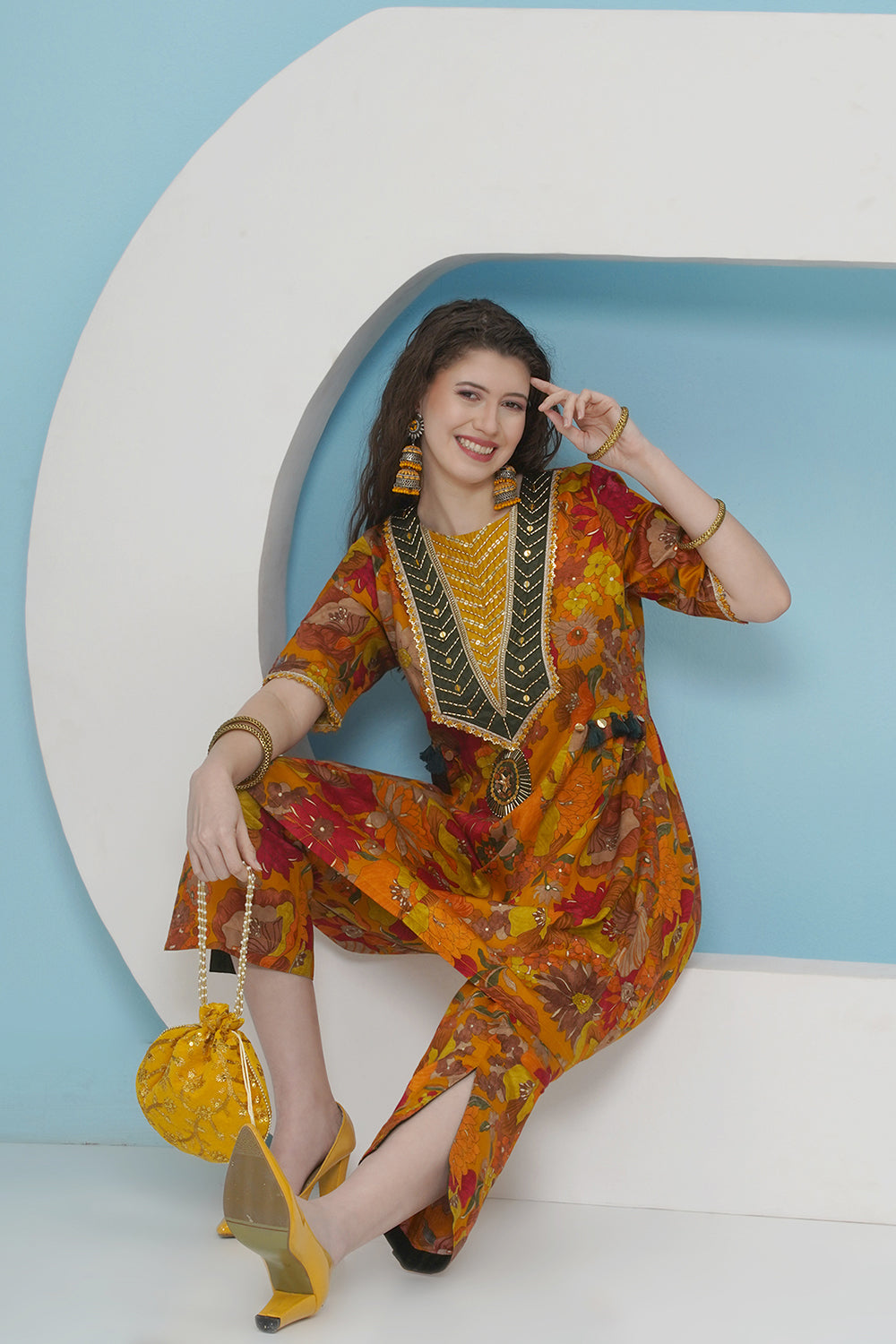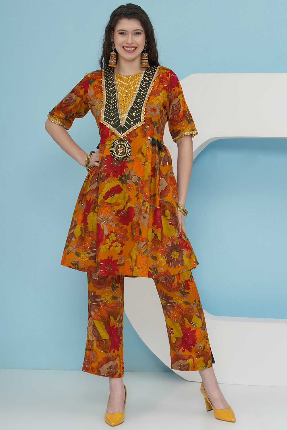Mustard Hand Embellised Set