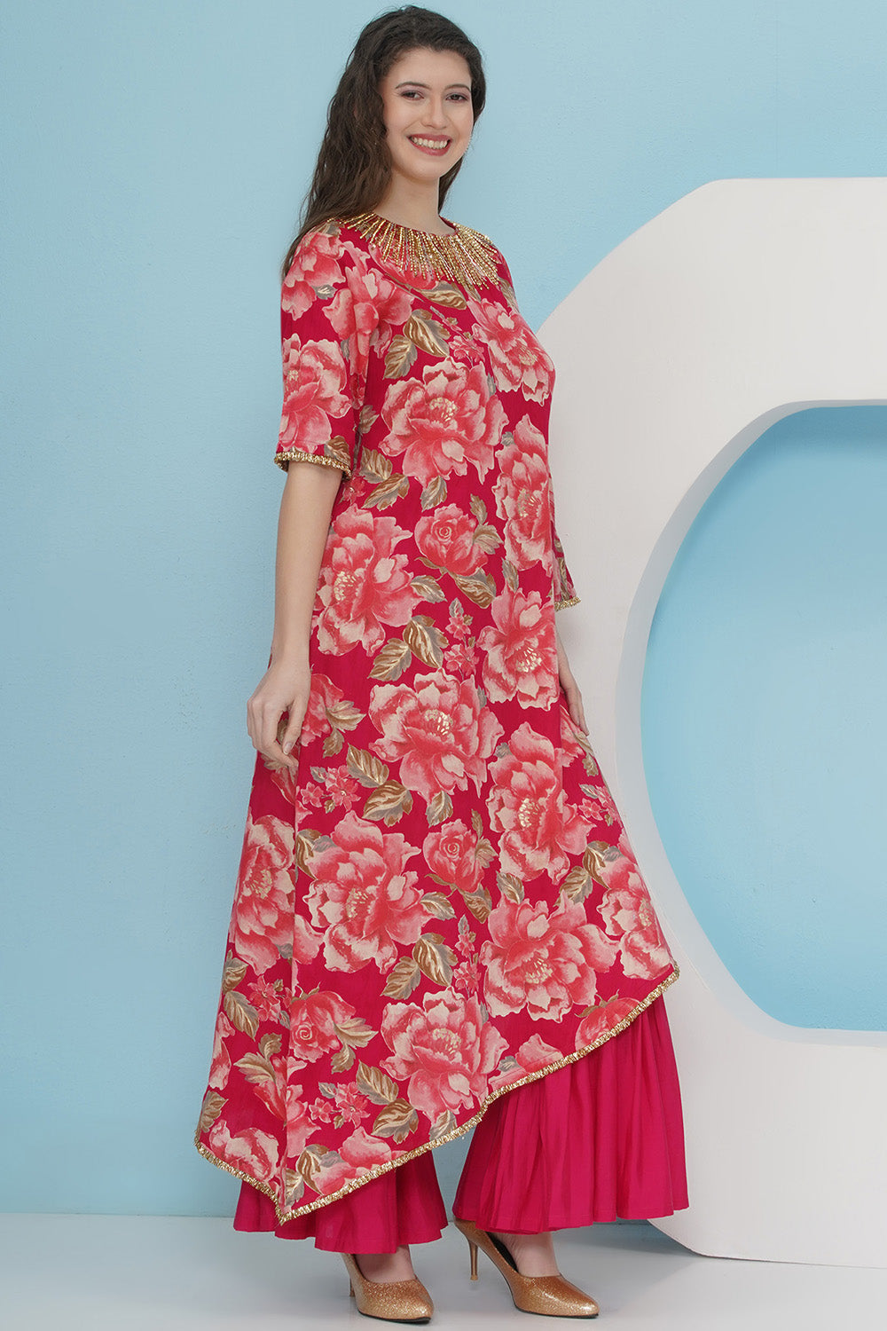 Pink One Side Kaftaan with Sahrara
